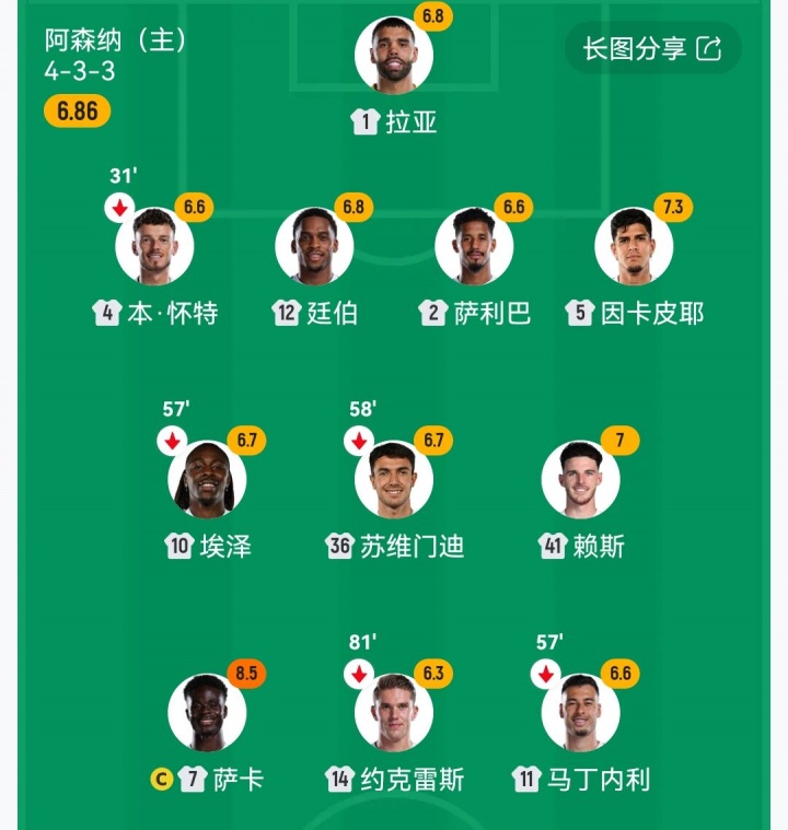 在对阵狼队的比赛中卡拉菲奥里因累计黄牌停赛,所幸萨利巴及时复出缓解了枪手的后防危机。但就在比赛第31分钟,本·怀特又因伤无法坚持,替补席上唯一的后卫斯凯利替补登场。