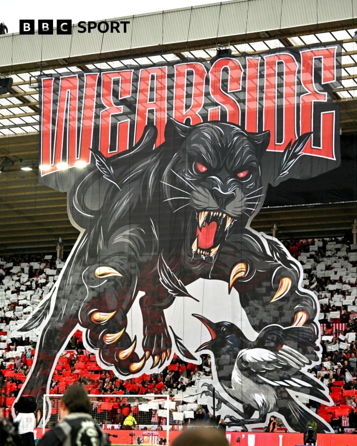 >火药味十足🔥桑德兰震撼TIFO:黑猫撕咬喜鹊,东北德比再现英超
