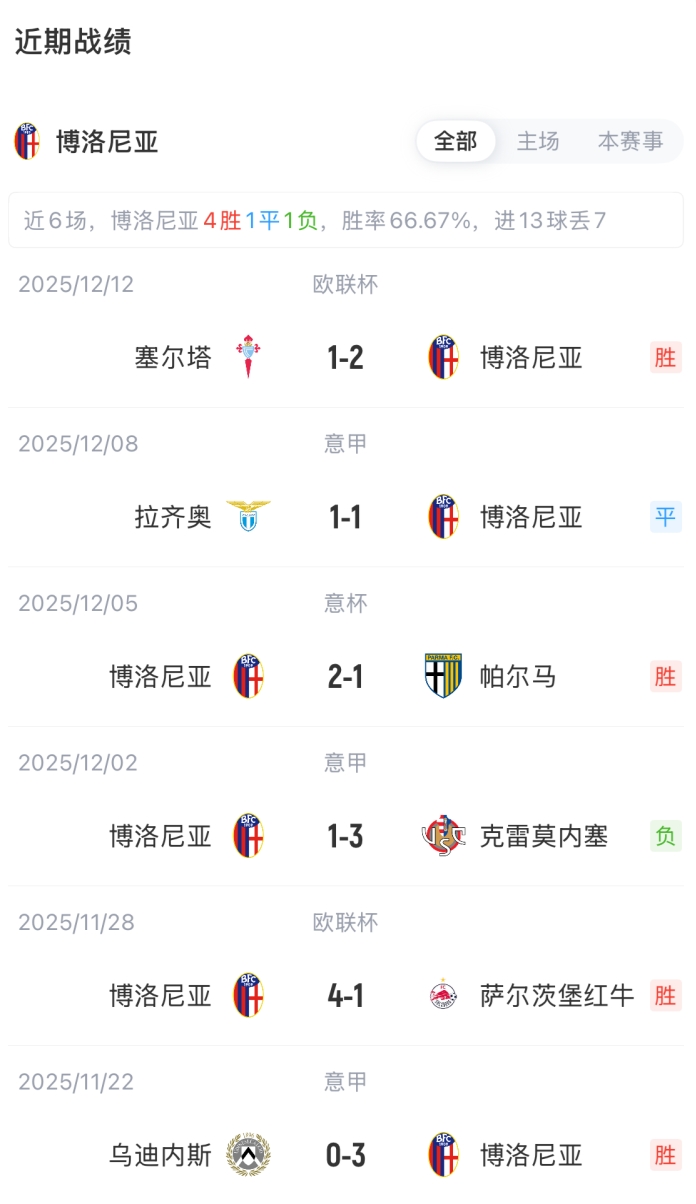 博洛尼亚首发:13-拉瓦利亚、20-佐尔泰亚、14-赫格姆、26-卢库米、33-胡安·米兰达、6-莫罗、4-波贝加、7-奥尔索里尼、19-刘易斯·弗格森、28-坎比亚吉、24-达林加