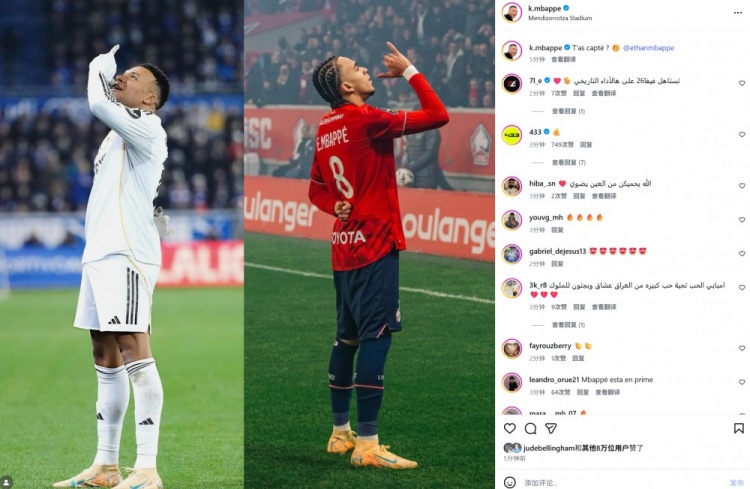本场比赛姆巴佩率先破门,进球后他也做出与弟弟伊桑·姆巴佩同款庆祝动作,配文写道:“你看到了吗?”