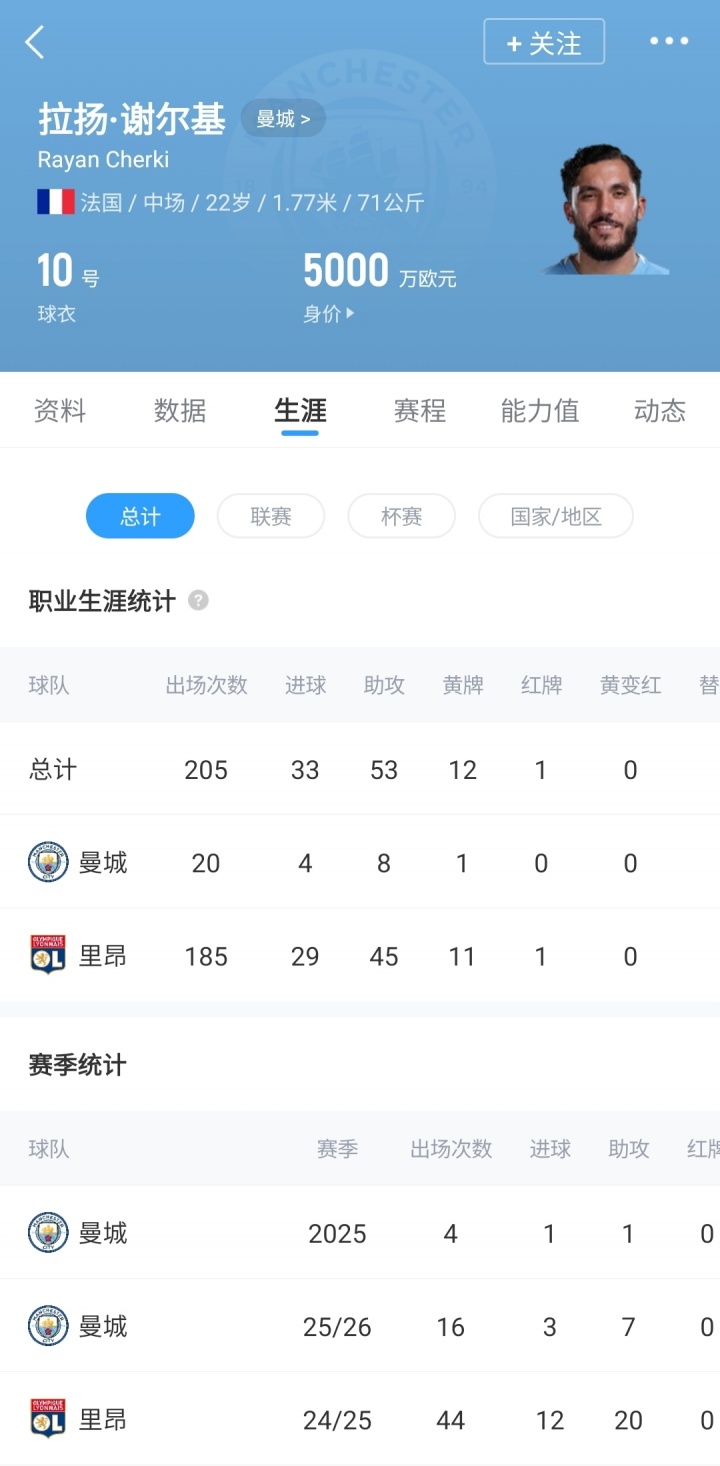 今年夏窗以3650万欧转会费加盟曼城以来,谢尔基代表球队出战20场比赛,贡献4球8助,目前德转身价已经来到5000万欧。