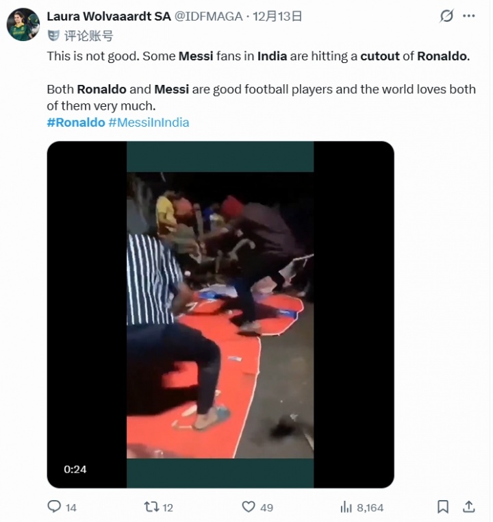>梅西印度行期间球迷棒打C罗立牌?❌假,该视频最早可追溯至5年前