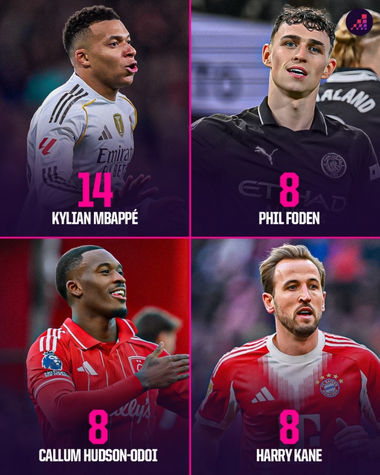 直播吧12月15日讯 Opta统计了2023-2024赛季以来球员在五大联赛的禁区外进球数量,姆巴佩14球最多。