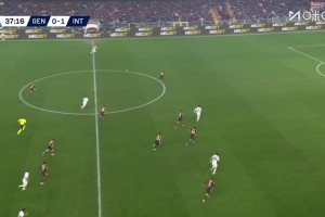 第90+3分钟,热那亚后卫与门将配合失误,险些送礼。↓