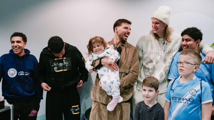 哈兰德、鲁本·迪亚斯、里科·刘易斯、马库斯·贝蒂内利和萨维尼奥本周早些时候访问了皇家曼彻斯特儿童医院,为孩子们带来了圣诞的欢乐。身穿俱乐部标志圣诞主题毛衣的曼城球迷们聚集在一起,参与了这个充满节日装饰的活动,重点是为曼城球迷准备礼物。