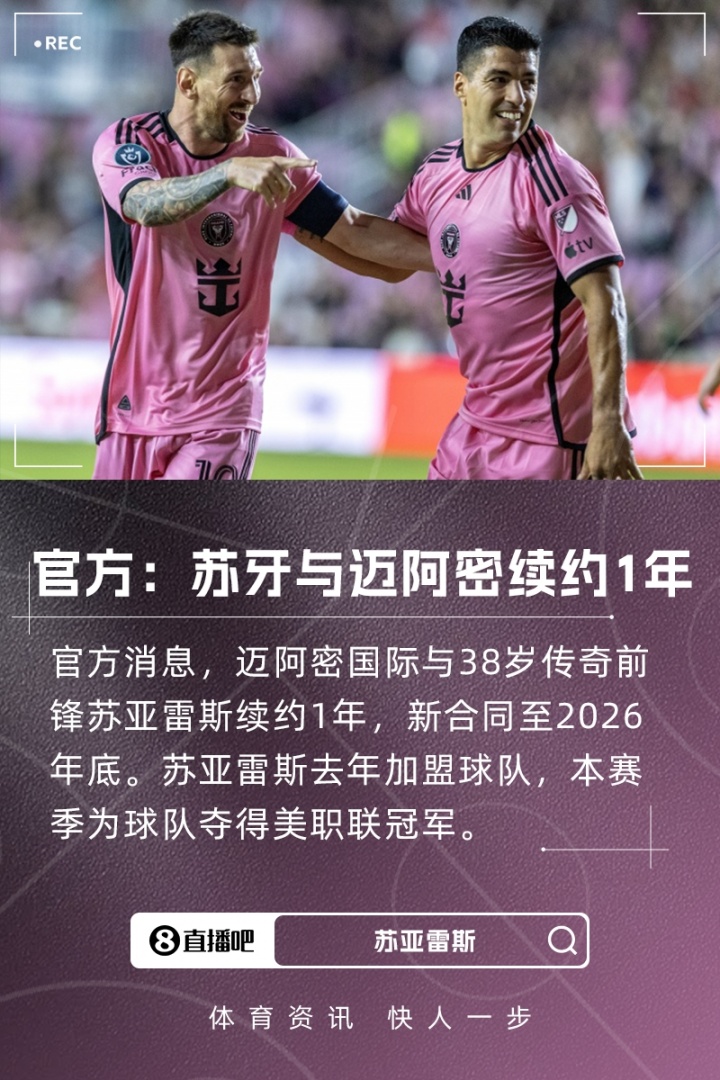 直播吧12月17日讯 迈阿密国际官方消息,与38岁苏亚雷斯续约至2026年底。