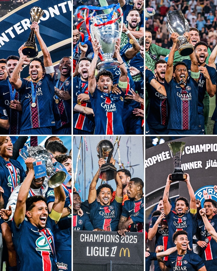 巴黎也成为2009的巴萨和2020的拜仁之后,第三支六冠王球队。
