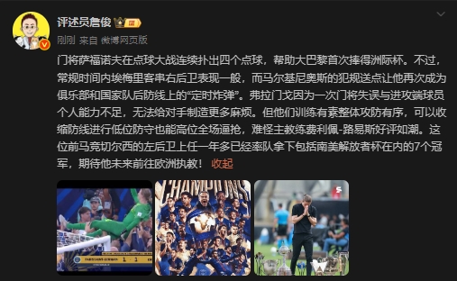 直播吧12月18日讯 洲际杯决赛,巴黎在点球大战中战胜弗拉门戈,成为第3支年度加冕6冠王的球队。评述员詹俊在微博点评道: