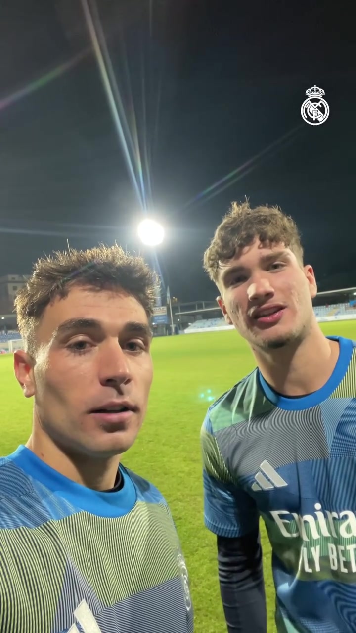 赛后大卫·希门尼斯、塞斯特罗寄语球迷:“晚上好,皇马球迷们,我们非常高兴上演首秀,非常感谢我们的球迷,Hala Madrid!”