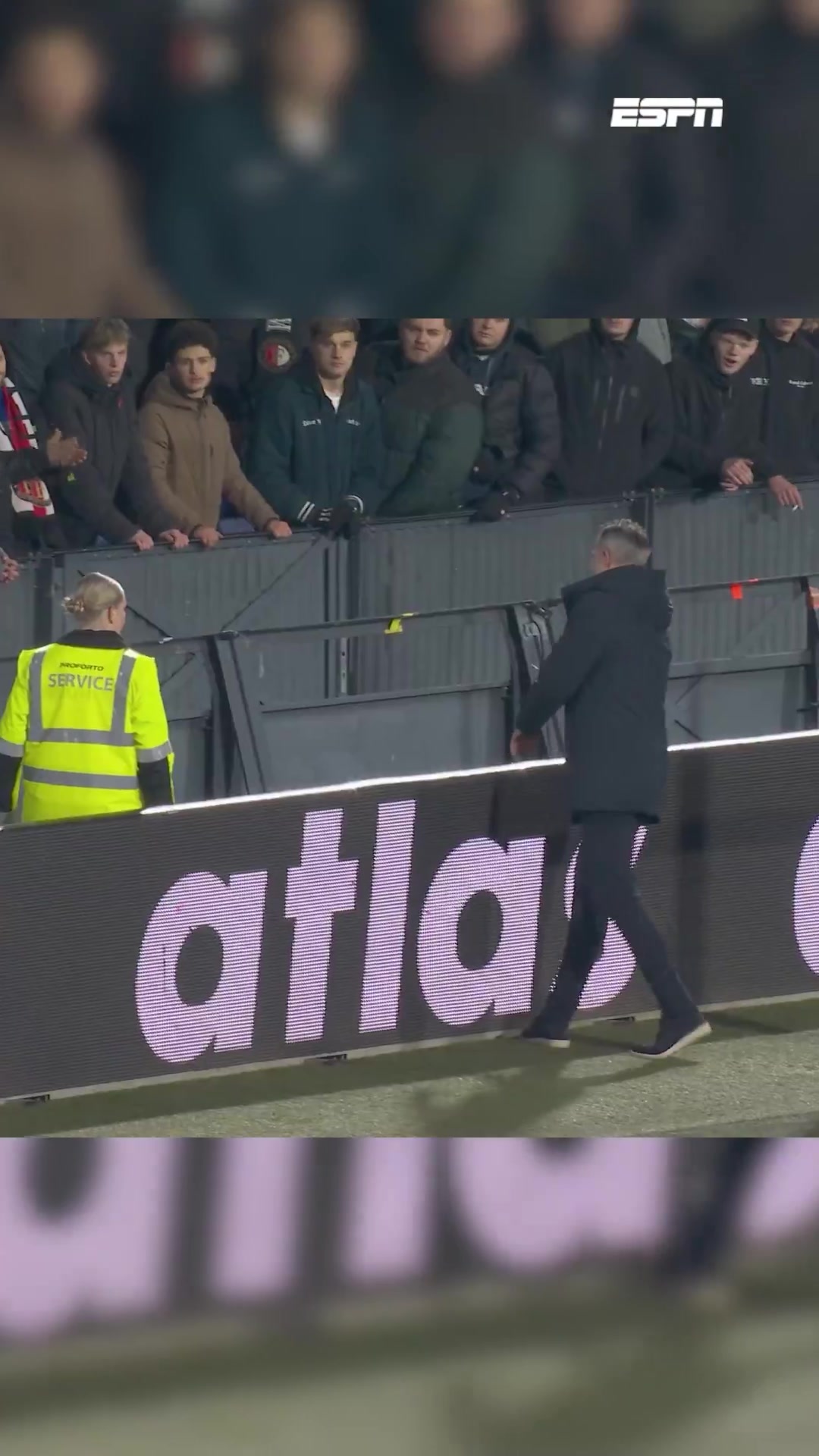 赛后,范佩西翻过广告牌来到看台前,几名费耶诺德球迷情绪激动开始训话,范佩西俯身倾听频频点头,鼓掌后离开。