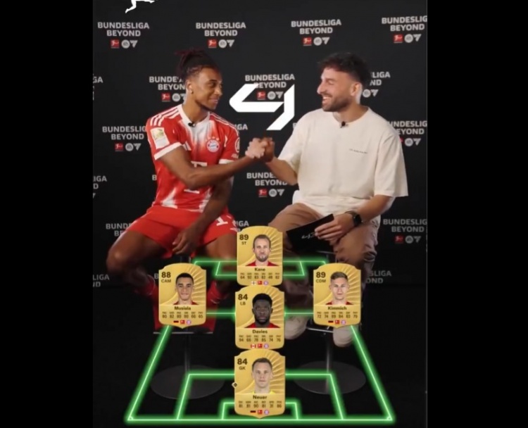 门将:诺伊尔;后卫:戴维斯;中场:穆西亚拉、基米希;前锋:凯恩。