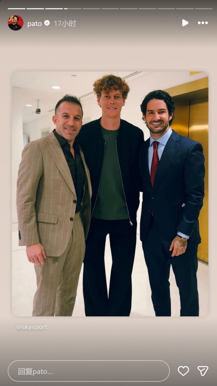 帕托参加国际足联在多哈组织的活动,他在社交媒体上晒出与意大利足坛名宿皮耶罗、意大利网球名将辛纳的合照。