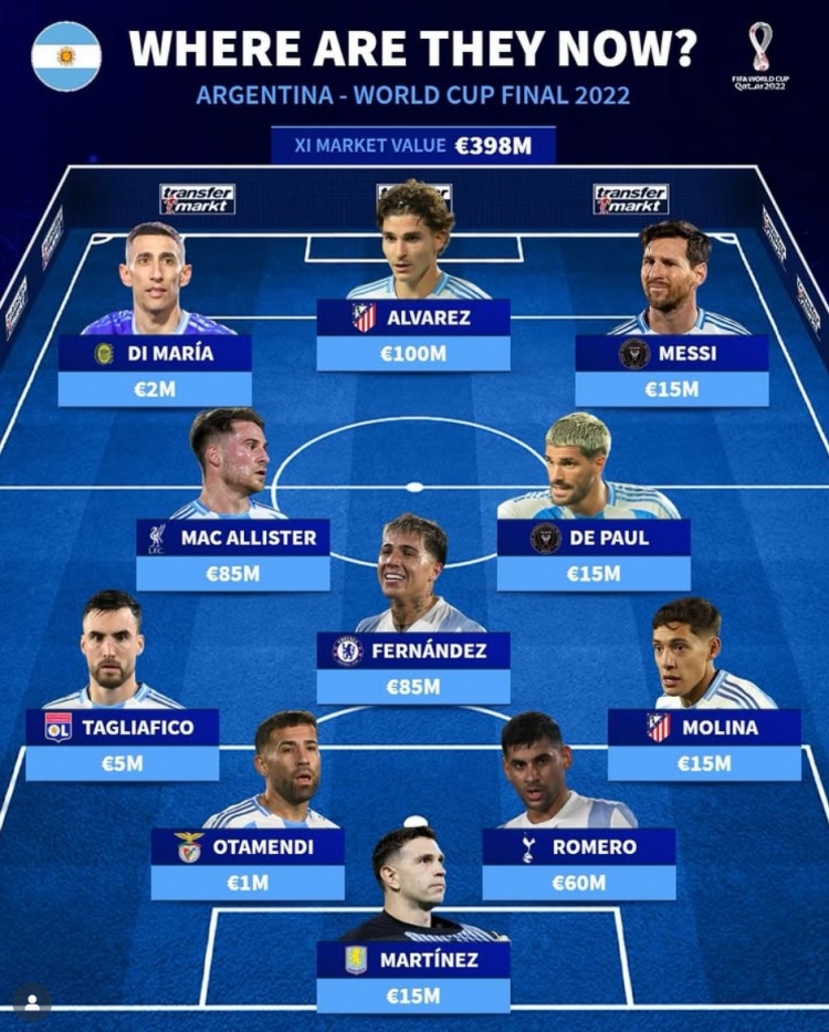 2022世界杯决赛阿根廷首发:当前身价3.98亿欧元