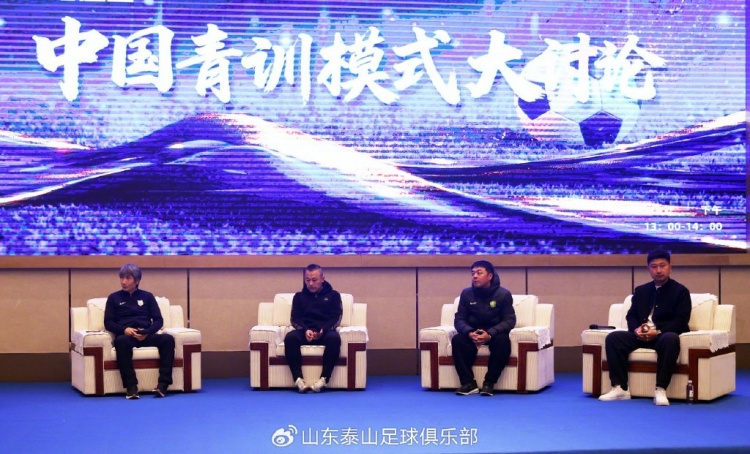 本次交流会分为“职业联赛的青春风暴”、“未来之星的培养密码”、“中国青训模式大讨论”和“国际青训理念分享”四个话题。山东泰山足球队教练组组长韩鹏结合赛场实际,解读了年轻球员集中涌现的成长规律。来自浙江绿城青训代表、陕西联合俱乐部代表分别分享了年轻球员王钰栋和王博豪培养经历和经验。山东泰山足球俱乐部竞训总监马宝刚分享了青训高度一体化建设和足校学生多元发展路径。来自加纳的Bossman、恒大足校U15主教练萨沙和泰山队功勋外援巴力斯塔也都分享了各自在中国执教青少年球队的感受。