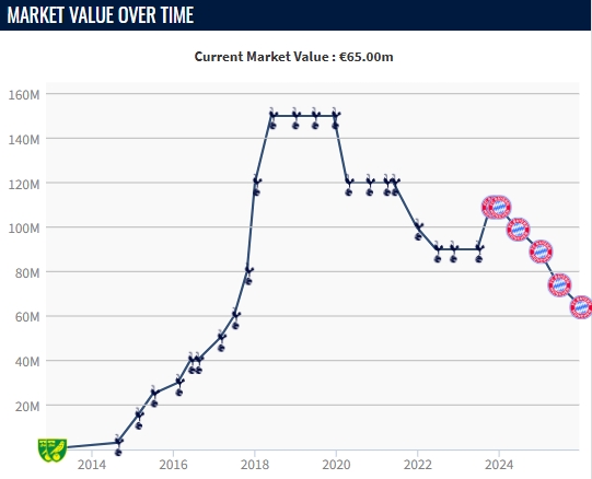德转德国区管理员对此的解释是:凯恩因年龄因素被下调估值,尽管他表现卓越且进球效率惊人。6500万欧元的身价,凯恩依然是同年龄段最具价值的球员。