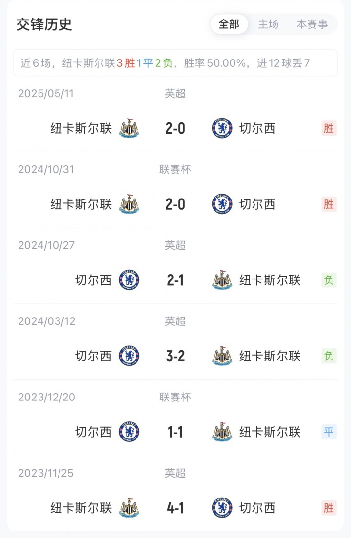 本场赛前,纽卡斯尔联6胜4平6负积22分,排名英超第12;切尔西8胜4平4负积28分,排名英超第4。两队在英超赛场的近4次交锋,双方旗鼓相当各取2场胜利。