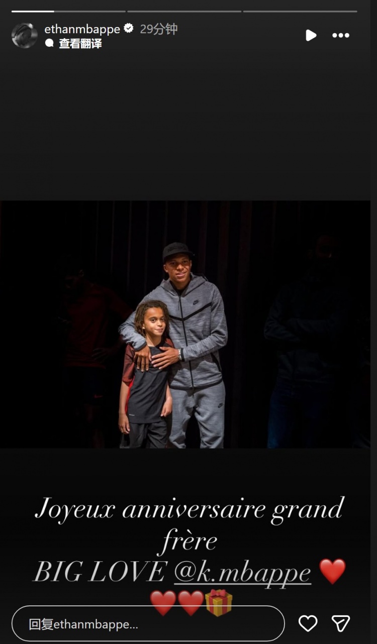 直播吧12月20日讯 今天是姆巴佩的27岁生日,弟弟伊桑·姆巴佩为他庆生。