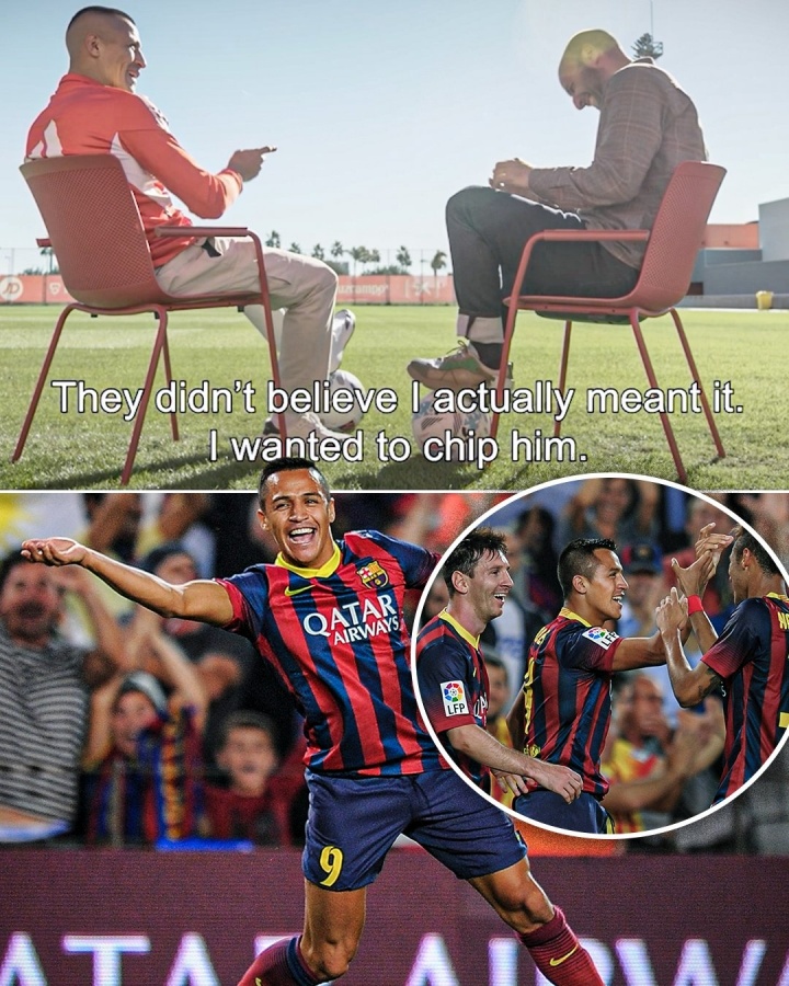 回想起这粒进球,桑切斯表示:“我看到内马尔正在控球,于是我斜插跑位,然后发现门将站位靠前……砰!我进球了,和内马尔、梅西一起庆祝,他们问我:‘你是故意这么踢的吗?’当然!他们都不相信我会这么射门。我一开始就打算挑射,但没想到这个球这么漂亮,就此载入史册。”