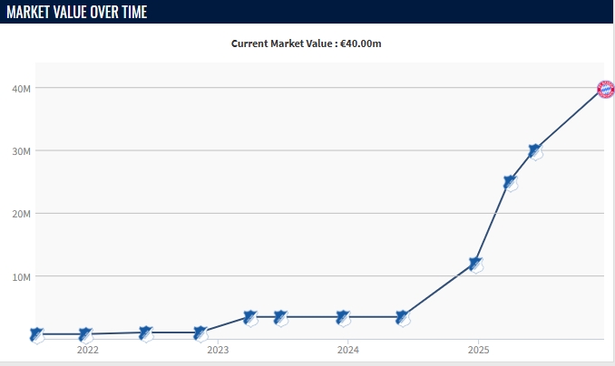 直播吧12月20日讯 昨日德转更新了德甲身价,今夏自由身加盟拜仁的20岁小将比绍夫身价上涨1000万欧,来到4000万欧。