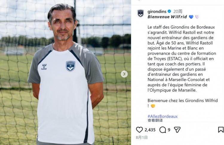 直播吧12月20日讯 法媒RMC消息,已降级至法丁联赛的波尔多队门将教练威尔弗里德·拉斯托尔因在11月29日的法国杯第八轮比赛中对裁判发表恐同言论,被法国足协纪律委员会处以一年禁赛处罚,其中九个月为强制执行。