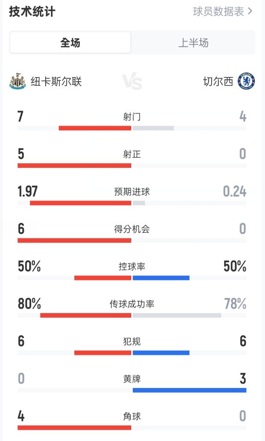 直播吧12月20日讯 2025-26赛季英超联赛第17轮,纽卡斯尔主场迎战切尔西,半场战罢纽卡暂2-0领先。