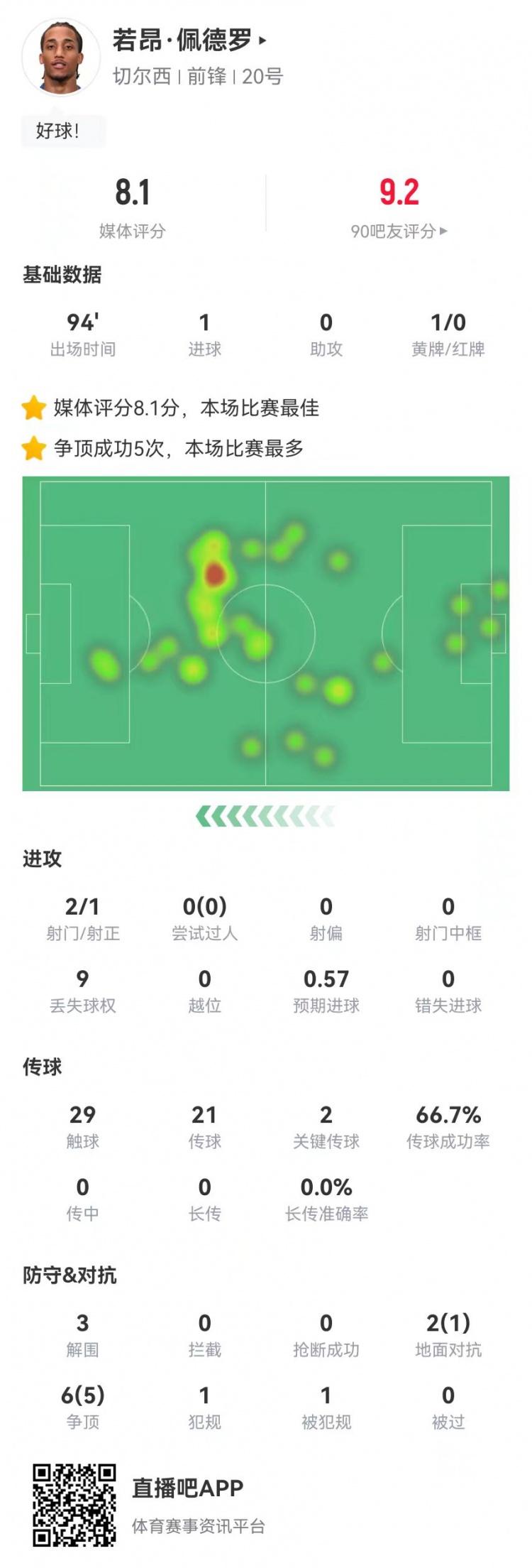 直播吧12月20日讯 切尔西在本轮英超客战纽卡斯尔,若昂·佩德罗本场数据如下: