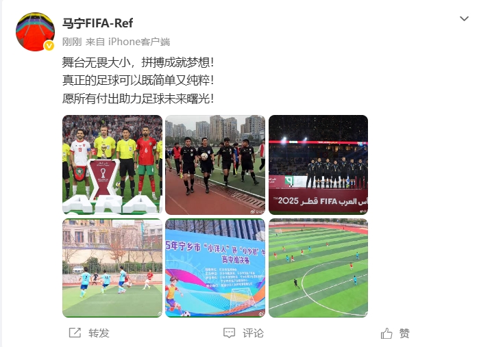 直播吧12月20日讯 马宁更新了个人社媒,晒出了执法阿拉伯杯、中小学生比赛等各类比赛的照片。