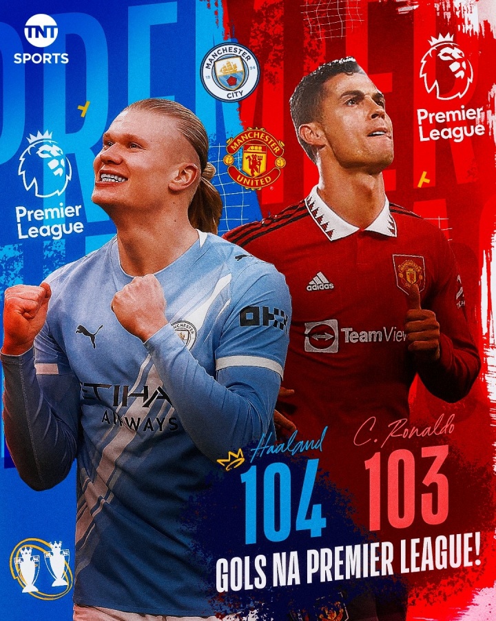 哈兰德在英超联赛中用114场比赛就打入了104球,在英超进球数上正式超越了C罗的103球(236场)!