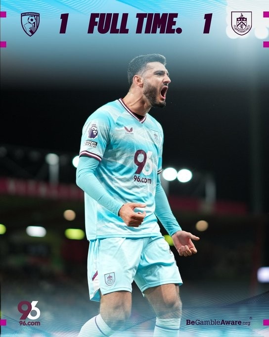 布罗亚第90分钟绝平,伯恩利队史最长英超7连败纪录终止