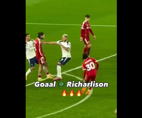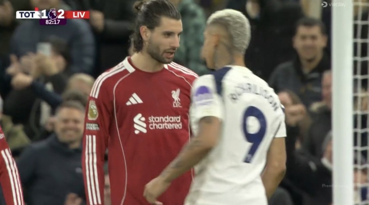 直播吧12月21日讯 英超第17轮,热刺1-2不敌利物浦,里沙利松替补破门,但他的一些动作也引发争议。