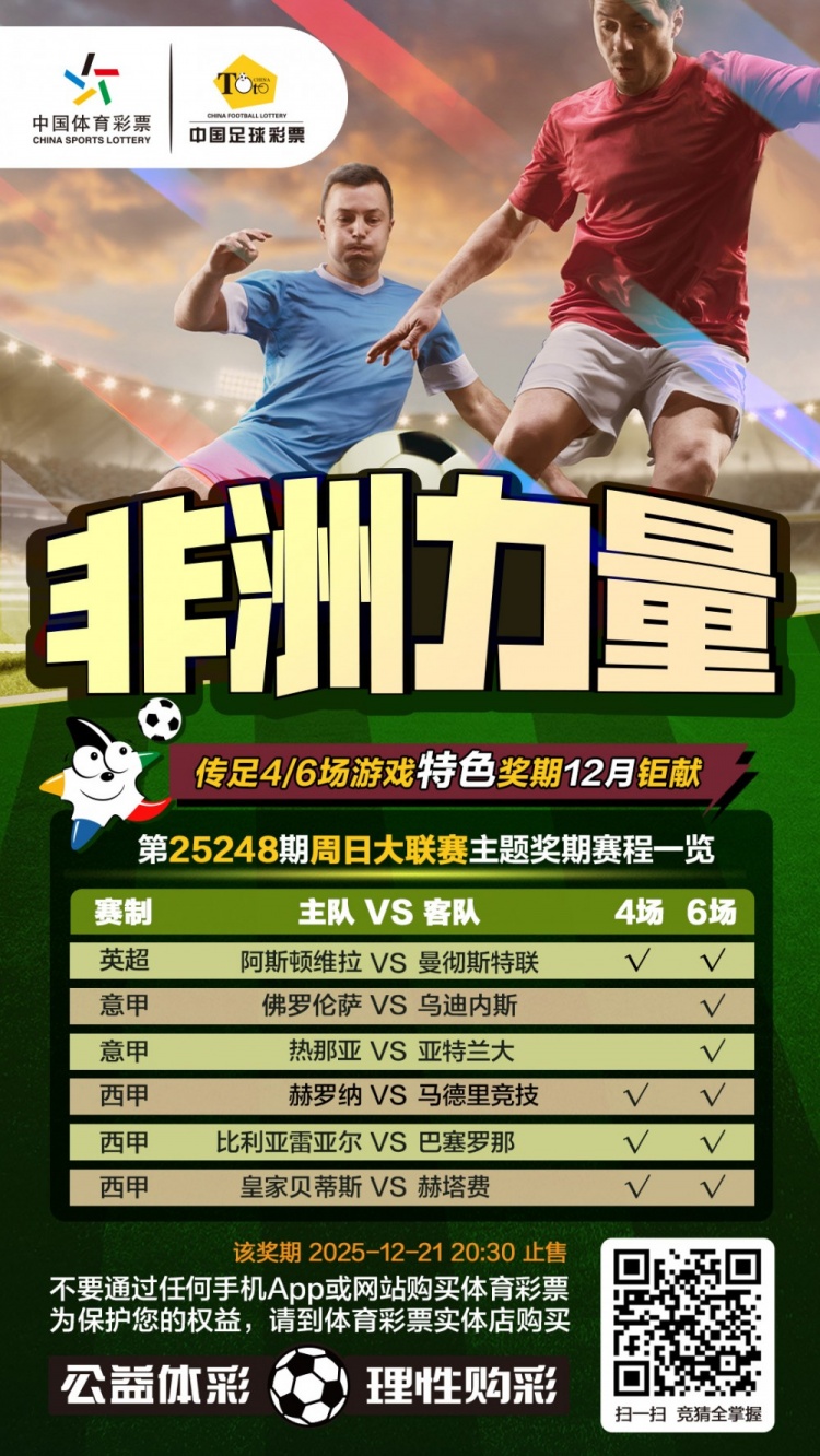>传足4/6场第25248期周日大联赛主题奖期赛程一览