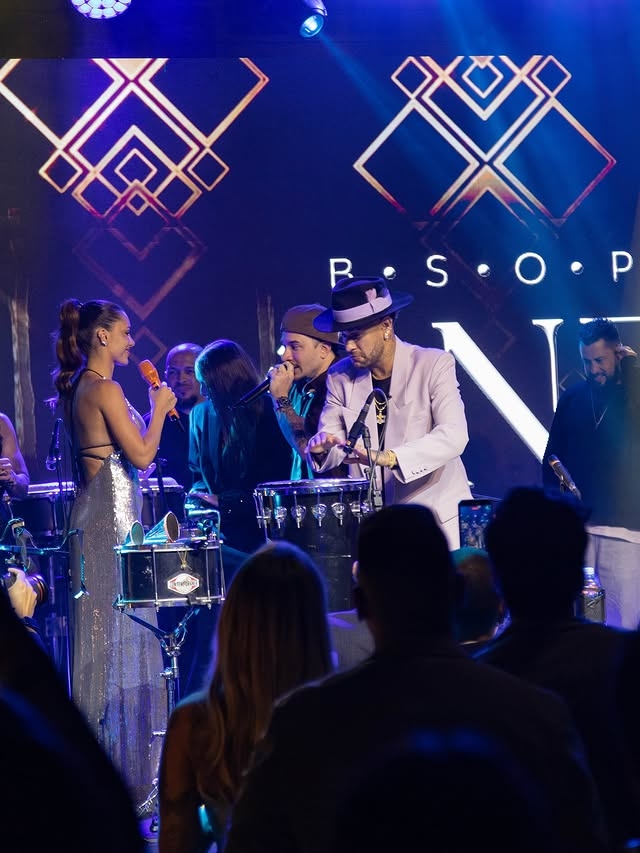 本周,内马尔与女友出席了在圣保罗举办的一场扑克慈善晚会,他们登上舞台,深情演唱了巴西组合Sandy&Junior的经典歌曲《Quando você passa》。内马尔在台上又唱又跳又拍鼓,还借此机会在歌词中向女友示爱。