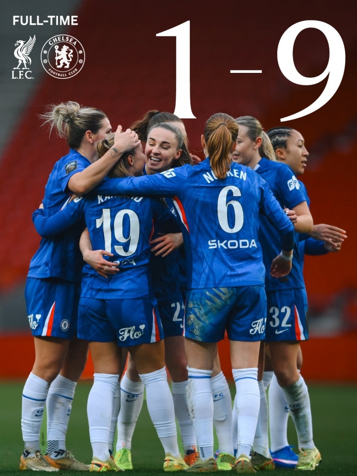 直播吧12月21日讯 在刚结束的一场女足联赛杯1/4决赛中,利物浦女足主场1-9遭切尔西女足狂虐。