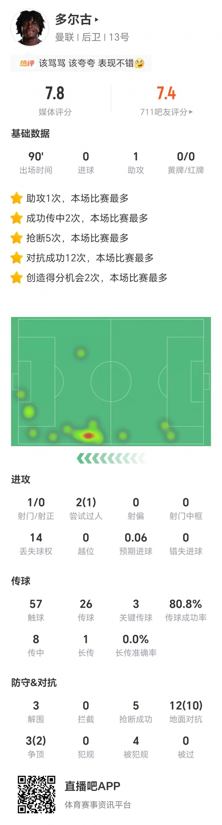 直播吧12月22日讯 英超第17轮比赛,曼联在客场以1-2的比分不敌维拉。本场比赛,曼联后卫多尔古首发登场表现活跃。