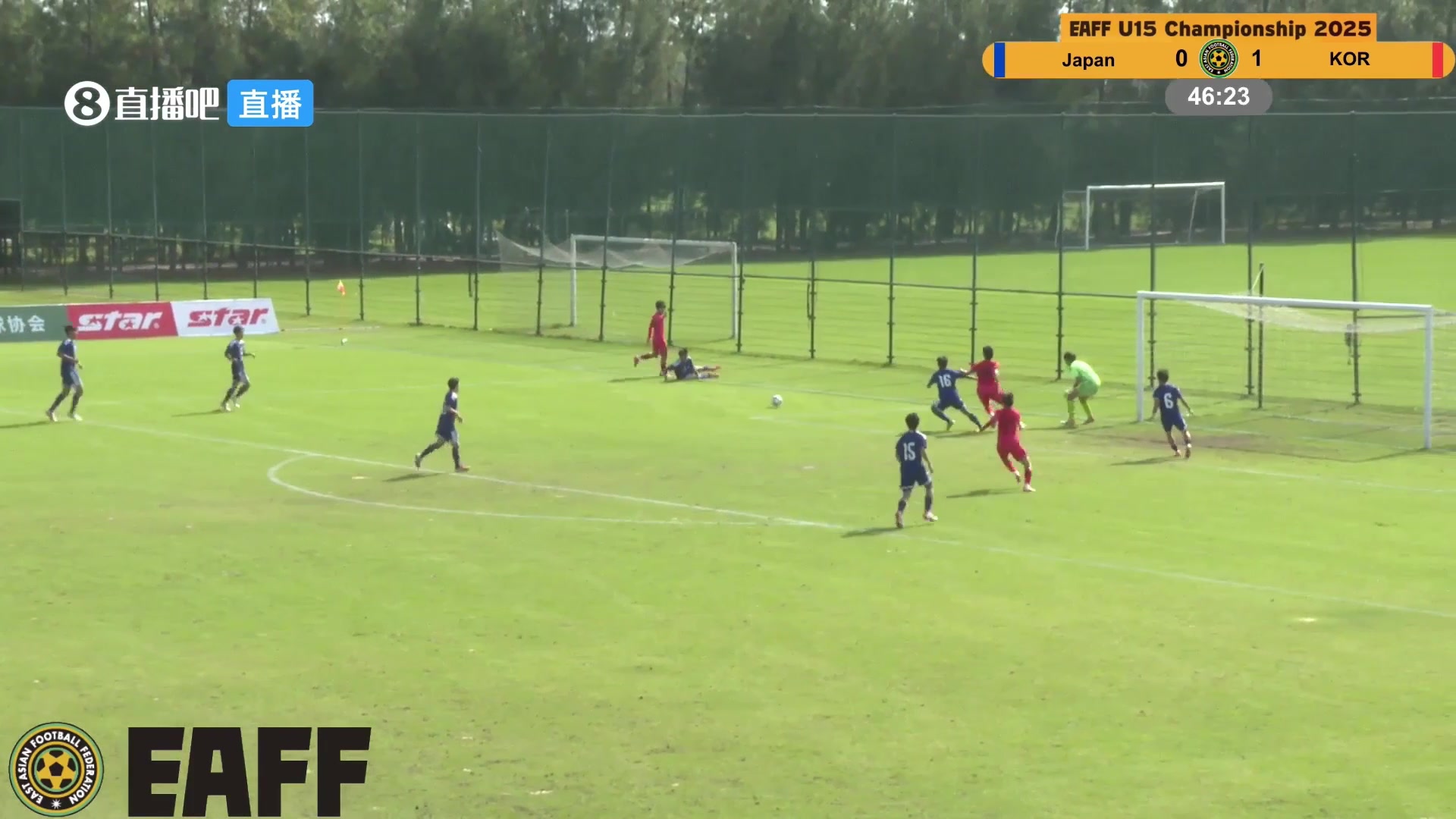 直播吧12月22日讯 U15东亚杯A组第3轮,日本U15对阵韩国U15,第47分钟,日本队0-2落后!韩国队下底传中,中路推射得手。