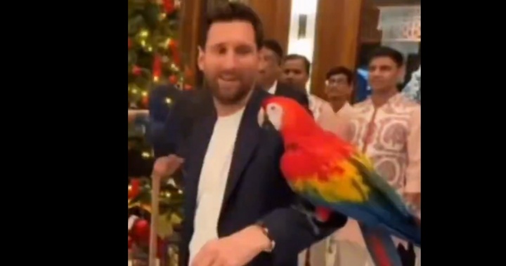 >表情包快出来了🤣梅西造访野生动物保护中心,左右手各停一只鸟