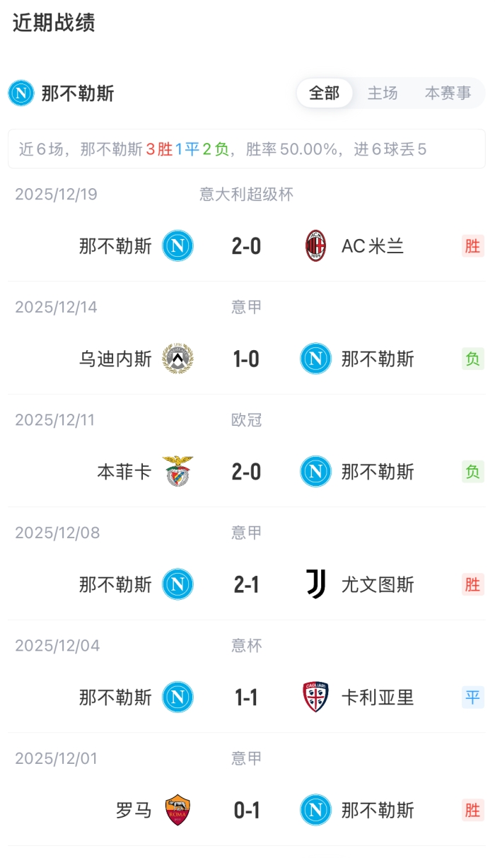 那不勒斯首发:32-瓦尼亚·米林科维奇、22-迪洛伦佐、13-拉赫马尼、5-胡安、37-斯皮纳佐拉、68-洛博特卡、8-麦克托米奈、21-波利塔诺、7-内雷斯、20-埃尔马斯、19-霍伊伦