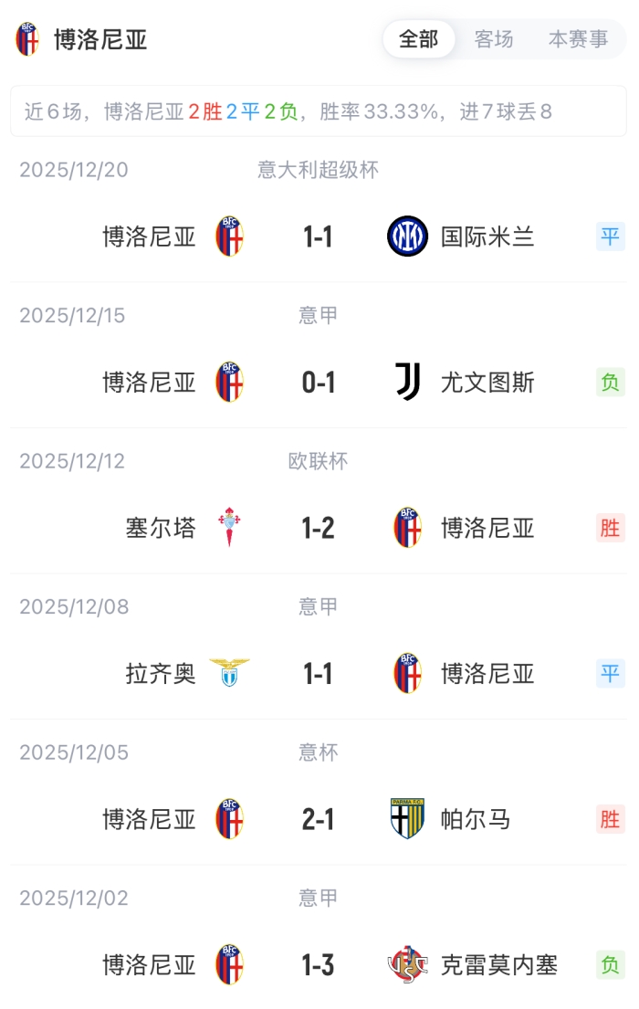 博洛尼亚首发:13-拉瓦利亚、14-赫格姆、33-胡安·米兰达、26-卢库米、2-霍尔姆、19-刘易斯·弗格森、4-波贝加、7-奥尔索里尼、21-奥德加德、28-坎比亚吉、9-卡斯特罗