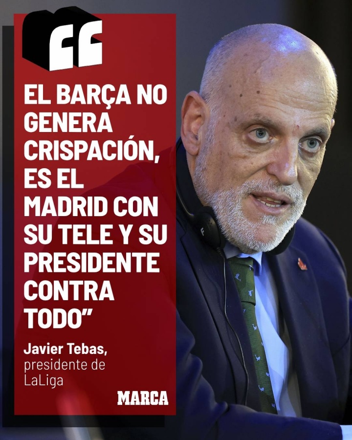 直播吧12月23日讯 西甲主席特巴斯接受了《每日体育报》的专访,其中他谈到了有关目前皇马和巴萨之间紧张关系的问题。