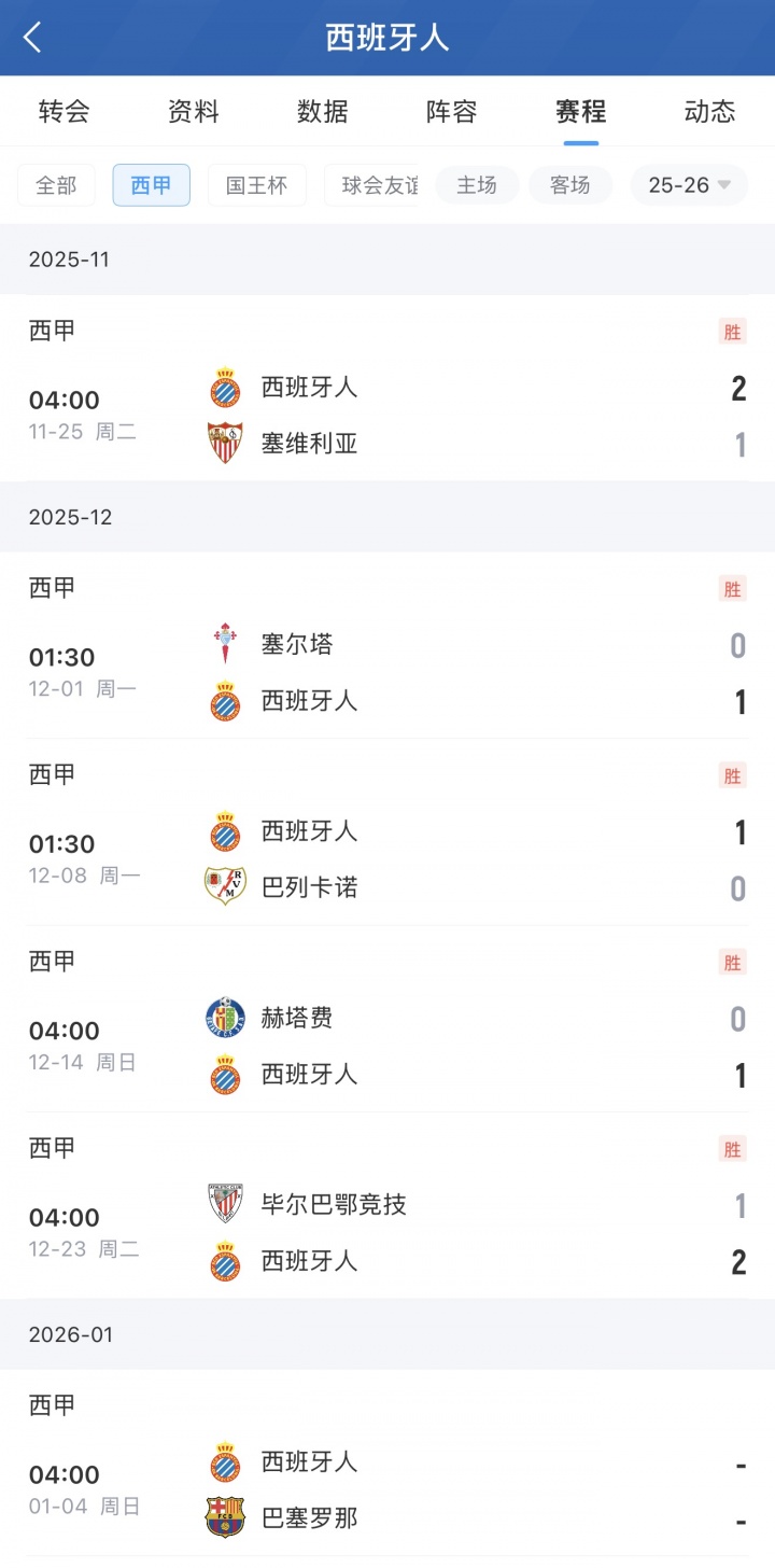 1月4日4点,西班牙人的下一个对手是同城死敌巴塞罗那。