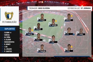 本菲卡出场阵容:1-特鲁宾、17-德蒂奇、44-托马斯-阿劳霍(56’4-安东尼奥·席尔瓦)、30-奥塔门迪、26-达尔、20-里奥斯、5-巴雷内切亚、8-奥瑟斯、10-苏达科夫(82’67-罗德里戈·雷戈)、25-普雷斯蒂亚尼(87’16-曼努埃尔·席尔瓦)、14-帕夫利季斯(81’9-伊万诺维奇)