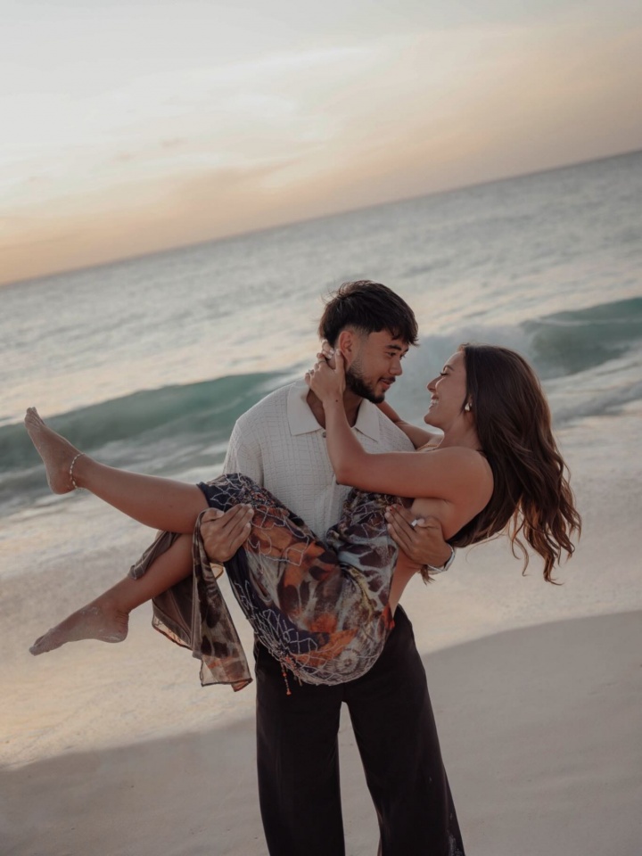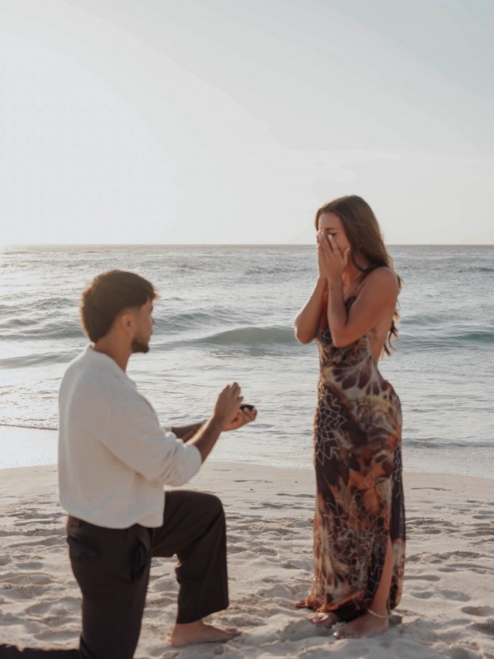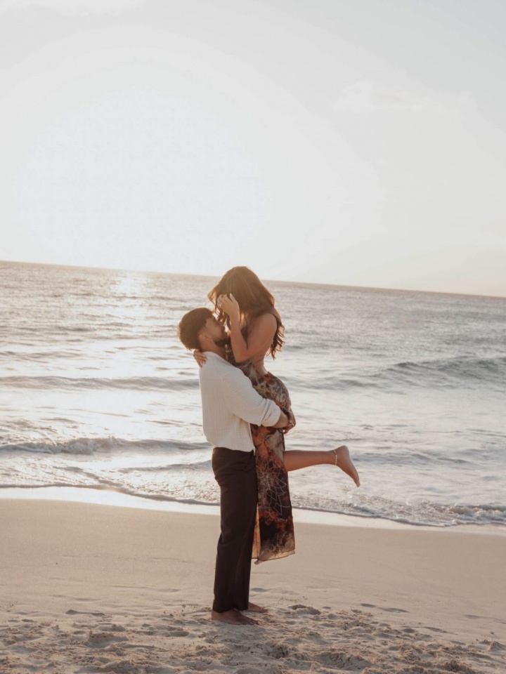 直播吧12月24日讯 昨日,伍小海和女友发布社媒晒出组图,两人在海边幸福相拥,镜头记录下了伍小海求婚的浪漫一幕。