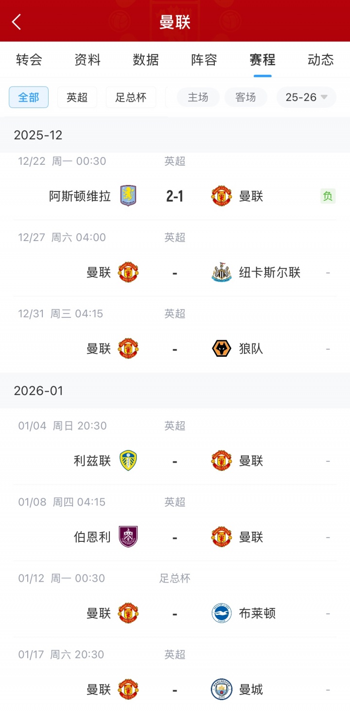 直播吧12月25日讯 曼联主帅阿莫林在最近一次发布会上确认,队长B费因软组织受伤将缺战一段时间。各大英媒预计B费将缺战近一个月,错过曼联未来5场比赛。