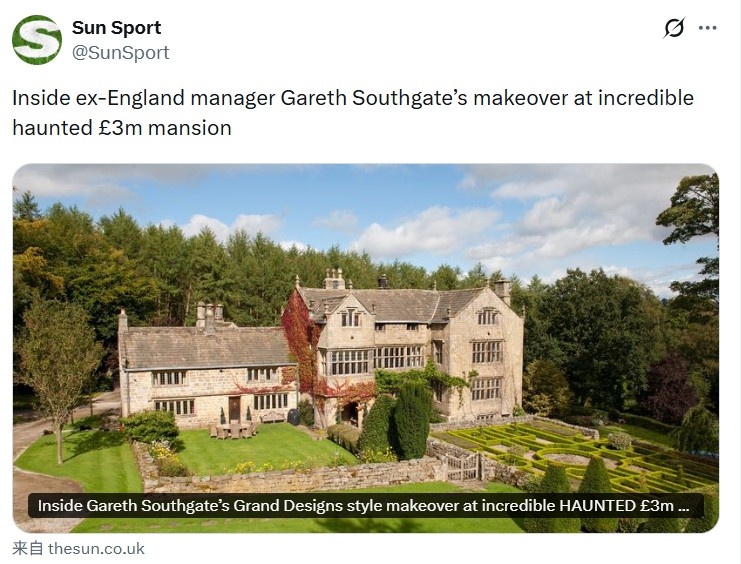 索斯盖特爵士和妻子艾莉森于2006年购买了这处房产,据《太阳报》透露,这套乡村豪宅价值325万英镑。