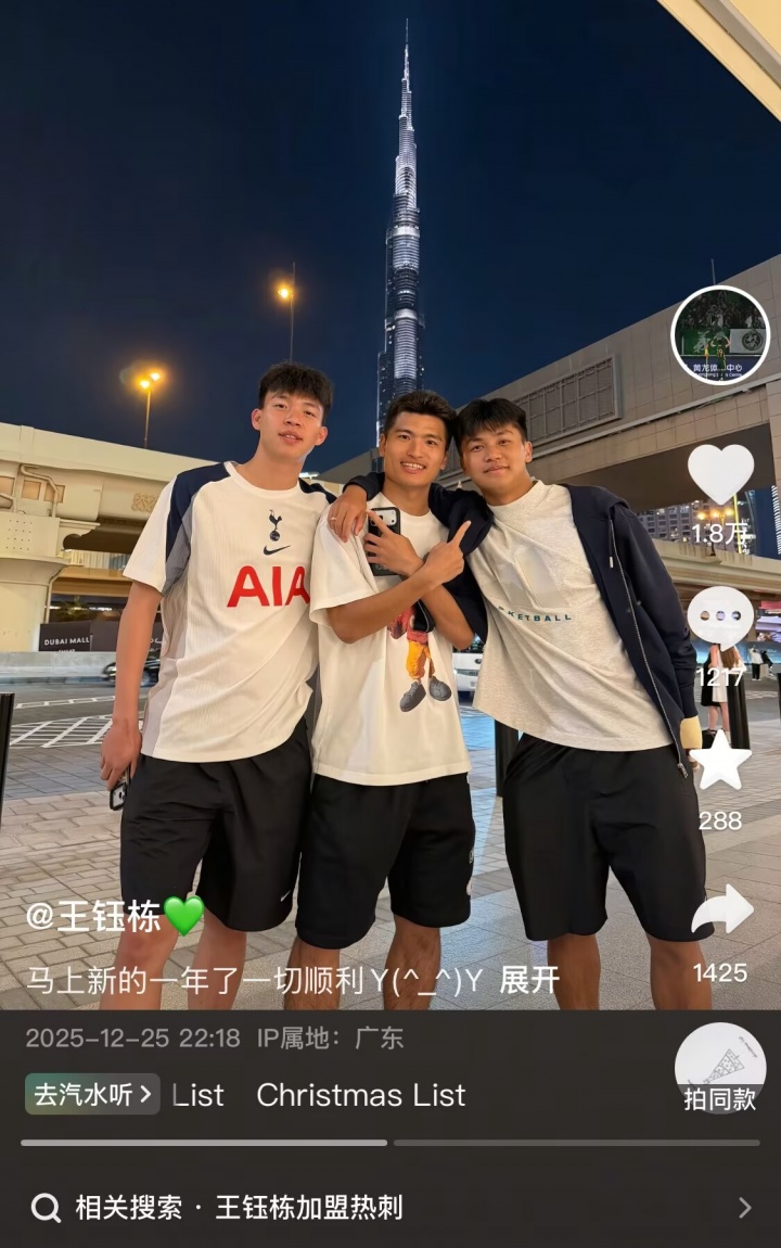 王钰栋照片上身着的是热刺球衣,评论区有球迷调侃:“重磅消息,here we go 中国新星冬窗重磅加盟热刺。”