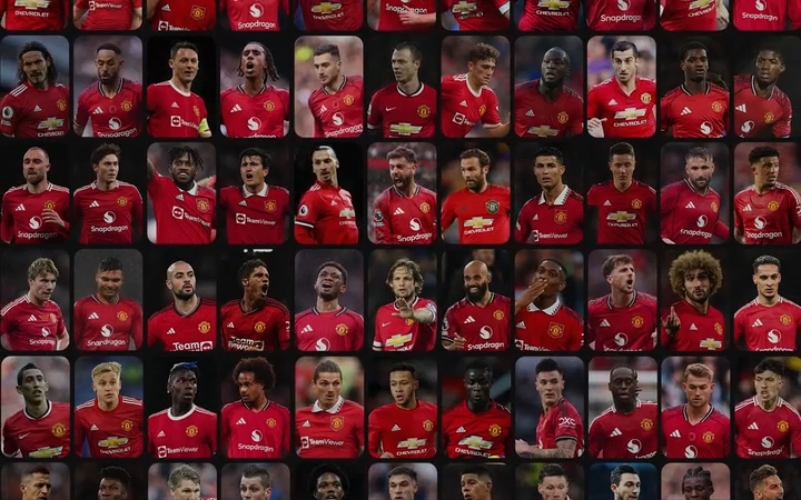 24、德里赫特;25、马兹拉维;26、卡塞米罗;27、弗雷德;28、利桑德罗·马丁内斯;29、万-比萨卡;30、C罗;31、罗梅罗;32、姆希塔良;33、林德洛夫;34、马夏尔