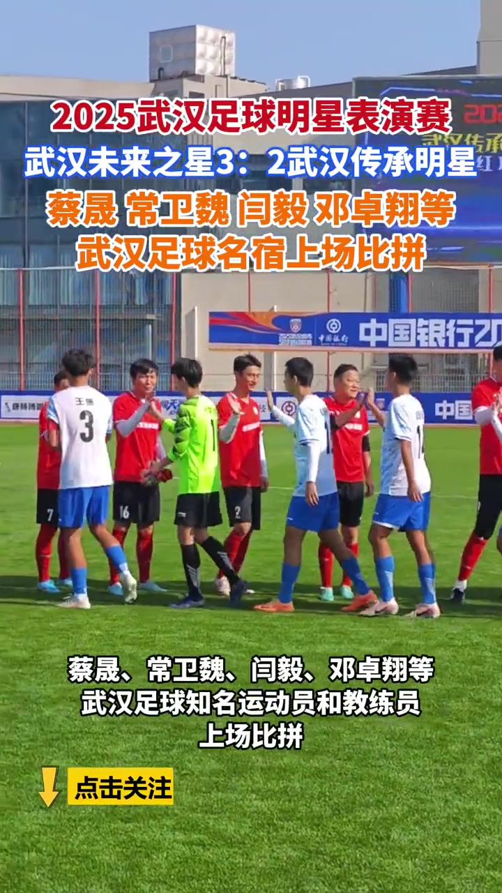 由武汉传承明星队对武汉未来之星队,蔡晟、常卫魏、闫毅、邓卓翔等武汉足球知名运动员和教练员上场比拼,最终武汉未来之星队3比2战胜武汉传承明星队。