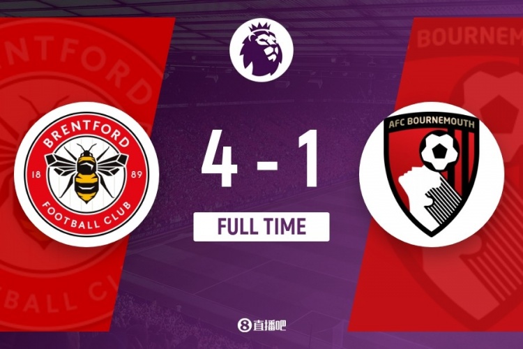 伤停补时2分钟。全场比赛结束,布伦特福德4-1伯恩茅斯。