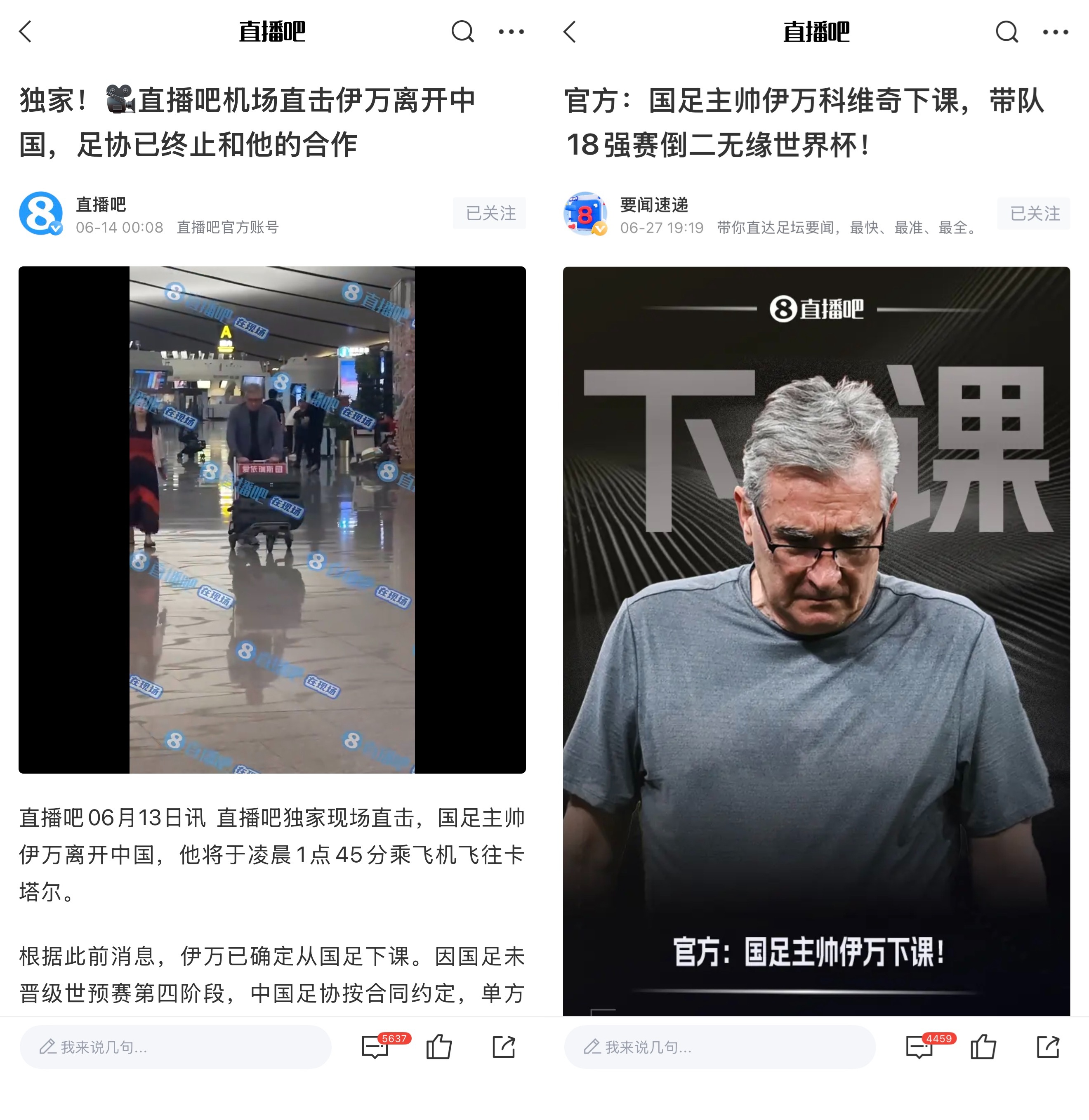 6月份,国足1-0击败巴林,小组排名倒数第二结束本届世预赛18强赛之旅,足协也随之终止与伊万的合作。6月14日,@直播吧足球 机场直击伊万离开中国,这位71岁老帅就此结束自己的执教生涯。