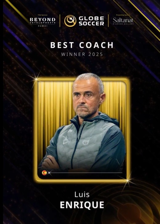 带领巴黎队史首夺欧冠!官方:恩里克当选环足奖年度最佳主帅
